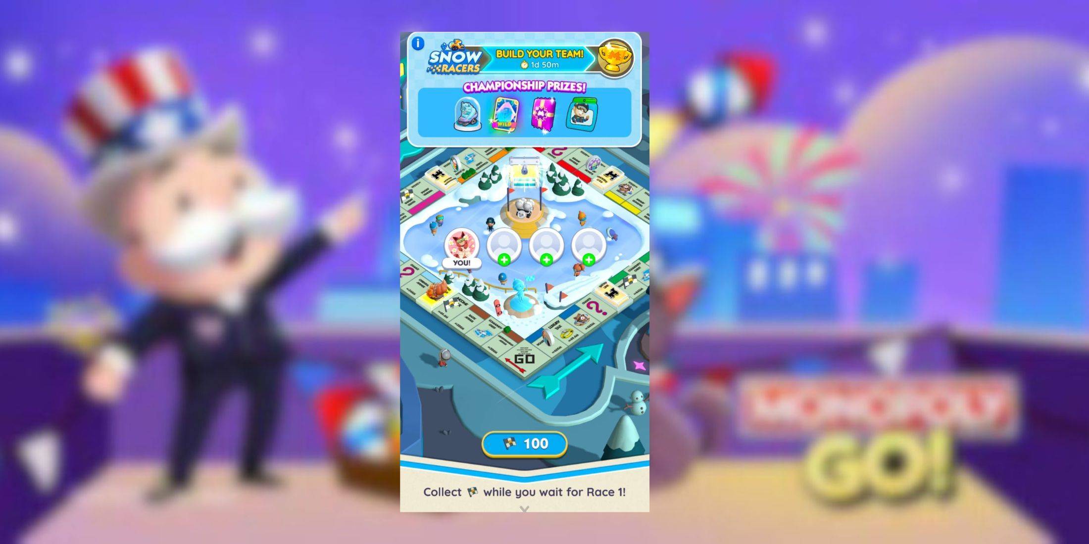 - ポイント:ポイントは、レースのパフォーマンスに基づいて授与されます。チームの大賞品には、ワイルドステッカー、スノーモービルトークン、冬のレーシング絵文字、2,700個のサイコロが含まれます。ソログラン賞は、スノーモービルトークン、ウィンターレーシング絵文字、4つ星と3つ星のステッカーパックの両方を備えています。